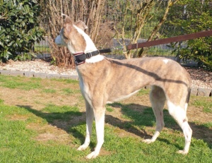 Misty musste nie Rennen laufen. Sie wurde den Tierschützern zusammen mit ihrer Schwester Maud übergeben. Sie ist ein freundliches, anhängliches, manchmal aufgeregtes Mädchen. Sie versteht sich sehr gut mit großen Hunden, Rüden und Hündinnen. Kleine Hunde und Katzen sind aber nicht ihr Ding. Misty läuft perfekt an der Leine. Sie kann auch ein sehr ruhiges Mädchen sein. Am besten wäre in ihrem neuen Zuhause bereits ein vorhandener Hund. Sie ist weder schüchtern noch nervös.