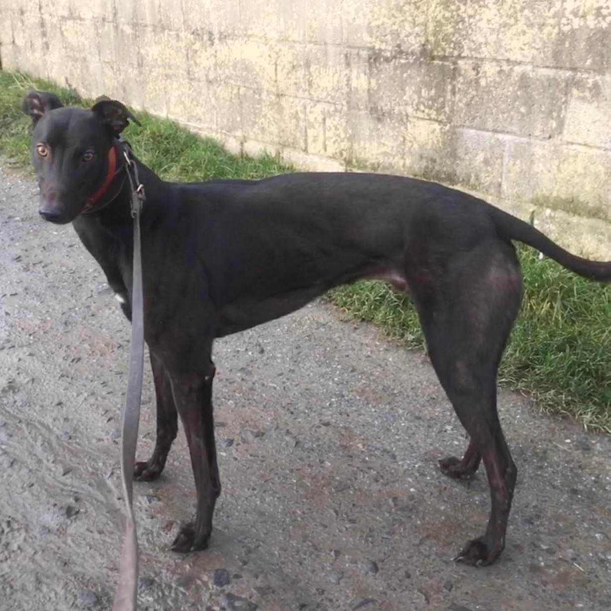 Bank ist ein zweijähriger Greyhoundrüde, der sich super mit großen Hunden versteht. Er liebt es spazieren zu gehen und ist an der Leine ein wahrer Gentleman.