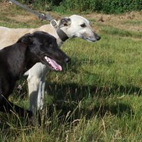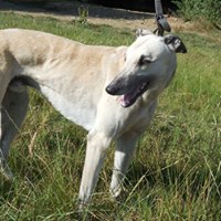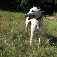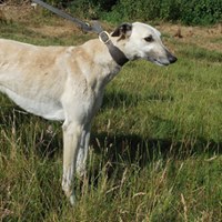Buzby ist ein liebenswerter beige-farbener Greyhound, überdeckt mit kleinen weißen Flecken. Er ist 2-3 Jahre alt und ist keine Rennen gelaufen, da er sich das Vorderbein gebrochen hat. Dies ist gut verheilt und Buzby liebt es mit seinen Greyhound-Kumpels zu laufen und zu spielen. Er ist ein sehr freundlicher Junge, liebt es neue Menschen kennenzulernen und gibt die besten Küsse. Buzby’s Fotos wurde auf einer Weide mit einer Eselherde geschossen und er hat sich kein bisschen an ihnen gestört.