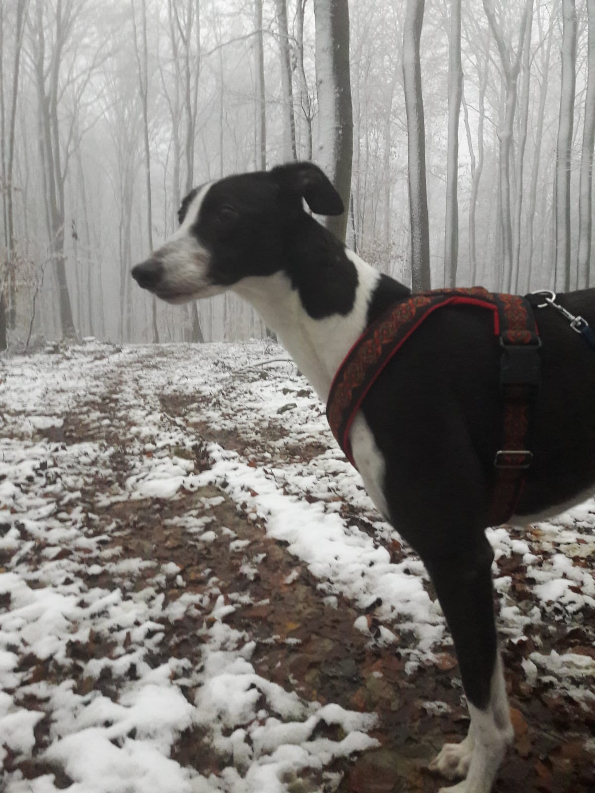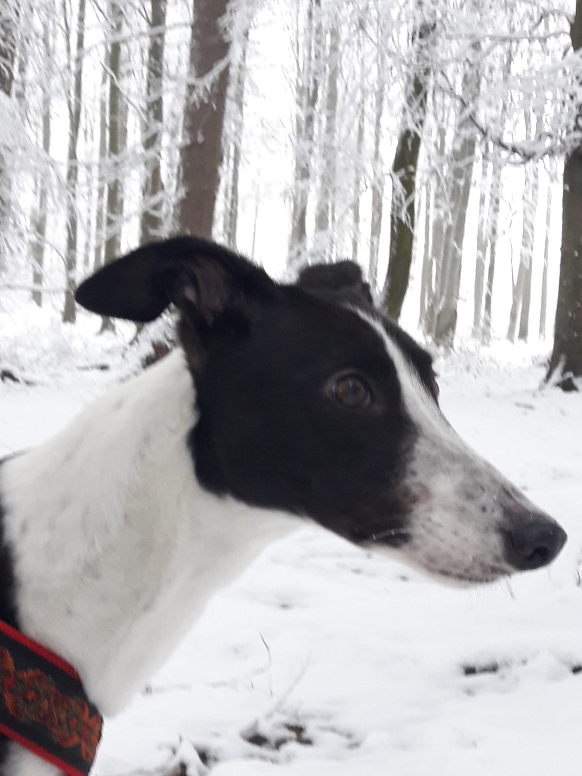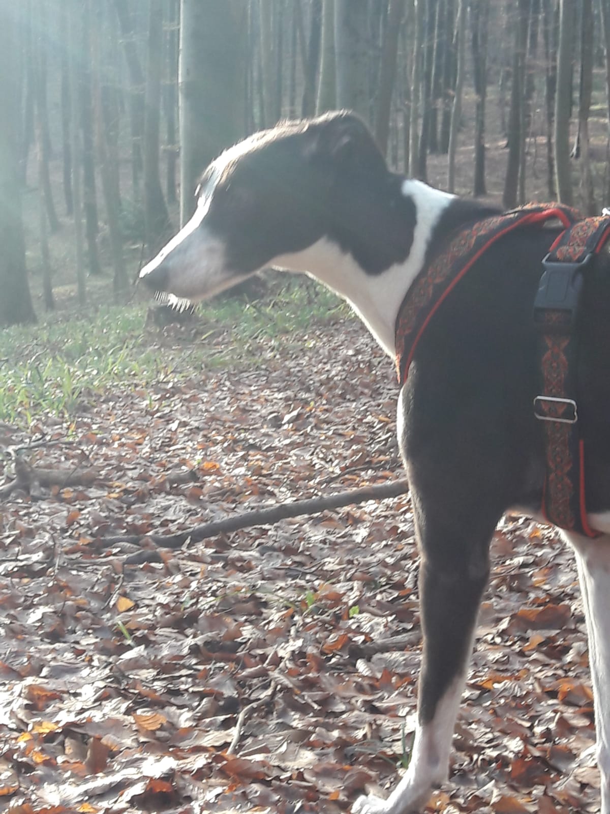 Jenna liebt lange Waldspaziergänge. Sie geht an der Leine ohne zu ziehen, ist immer aufmerksam wo ihr Mensch ist, wartet und kommt auf Kommando herbei. Sie liebt es auch sich beim Laufen auszutoben. Dazu reichen ihr aber schon ein paar Minuten. Im Haus ist sie sehr entspannt und ruhig. Auch das Autofahren ist kein Problem. Jenna ist nicht ängstlich und am Weihnachtsmarkt (viele Menschen, oder auch mit anderen Hunden) bleibt sie ruhig.