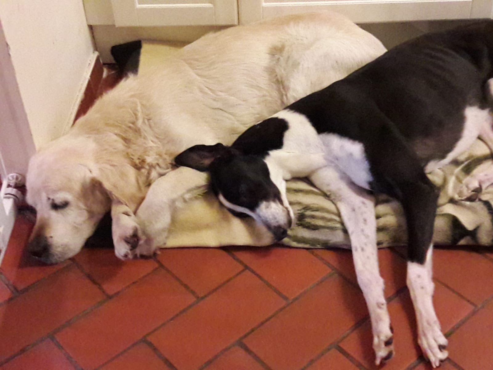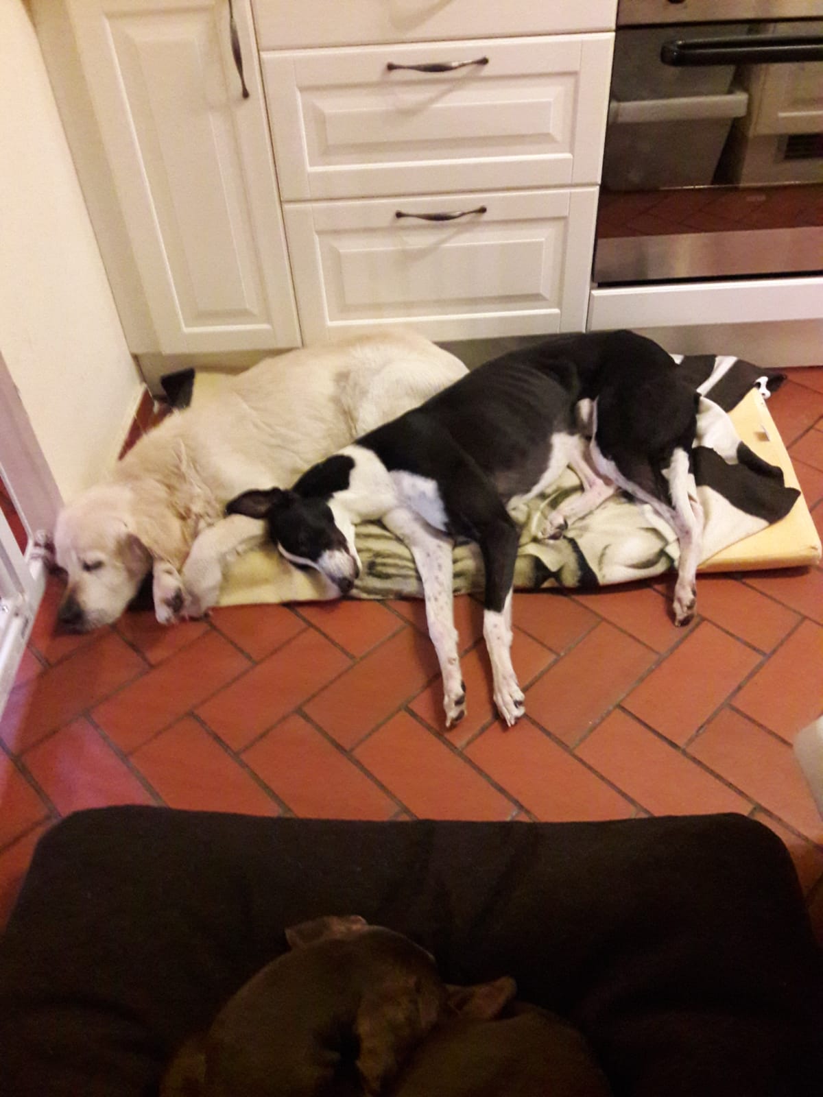 Jenna ist ein ganz liebes, sehr neugieriges Mädchen. Egal was ich tue, sie ist an meiner Seite um zu beobachten. Auch im Wald ist sie eifrig am schnüffeln und entdecken, auf der Wiese beginnt sie begeistert zu graben. Jenna orientiert sich dabei an ihren Hundekollegen Nico (14 jähriger Goldie) und Szundi (6jähriger Vizsla/Labbimischling). Unsere 3 Katzen findet sie auch sehr interessant, hat sie aber noch nie gejagt. Jenna kommt jetzt schon sehr gerne kuscheln und auch das Sofa hat sie als Ruheplatz entdeckt. Stiegen bewältigt sie mittlerweile auch sehr souverän.