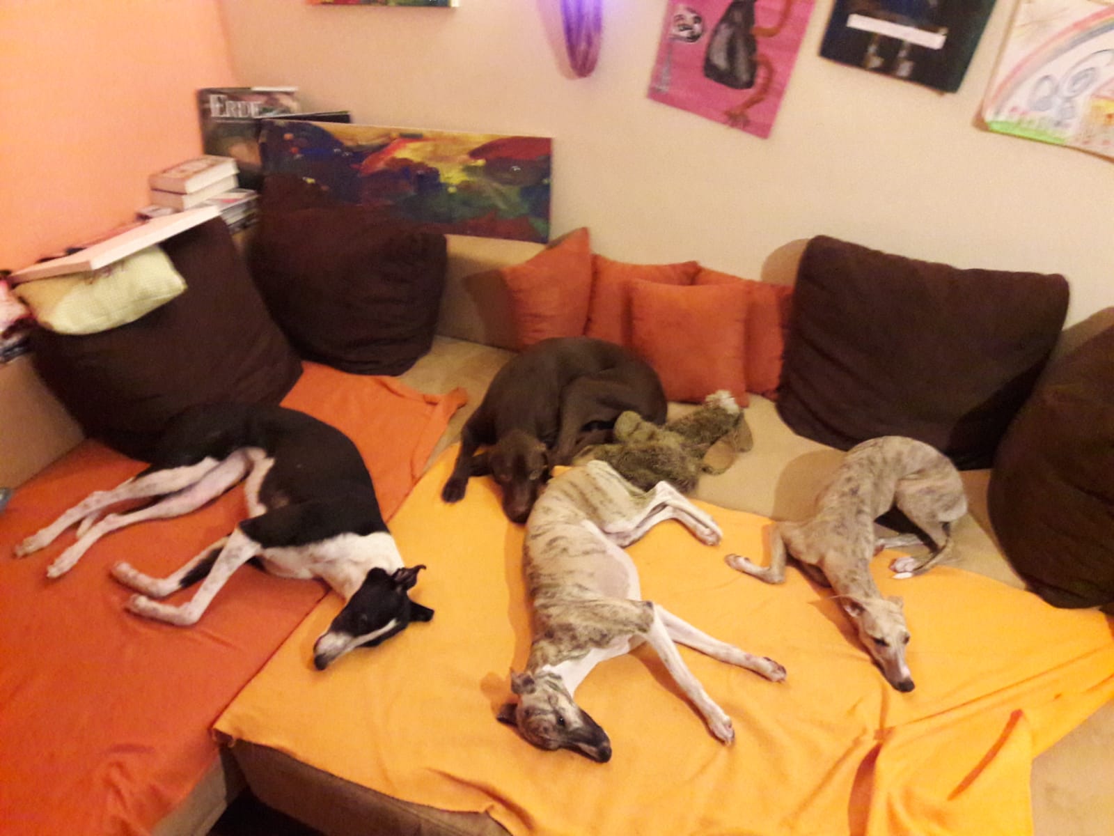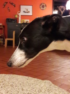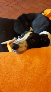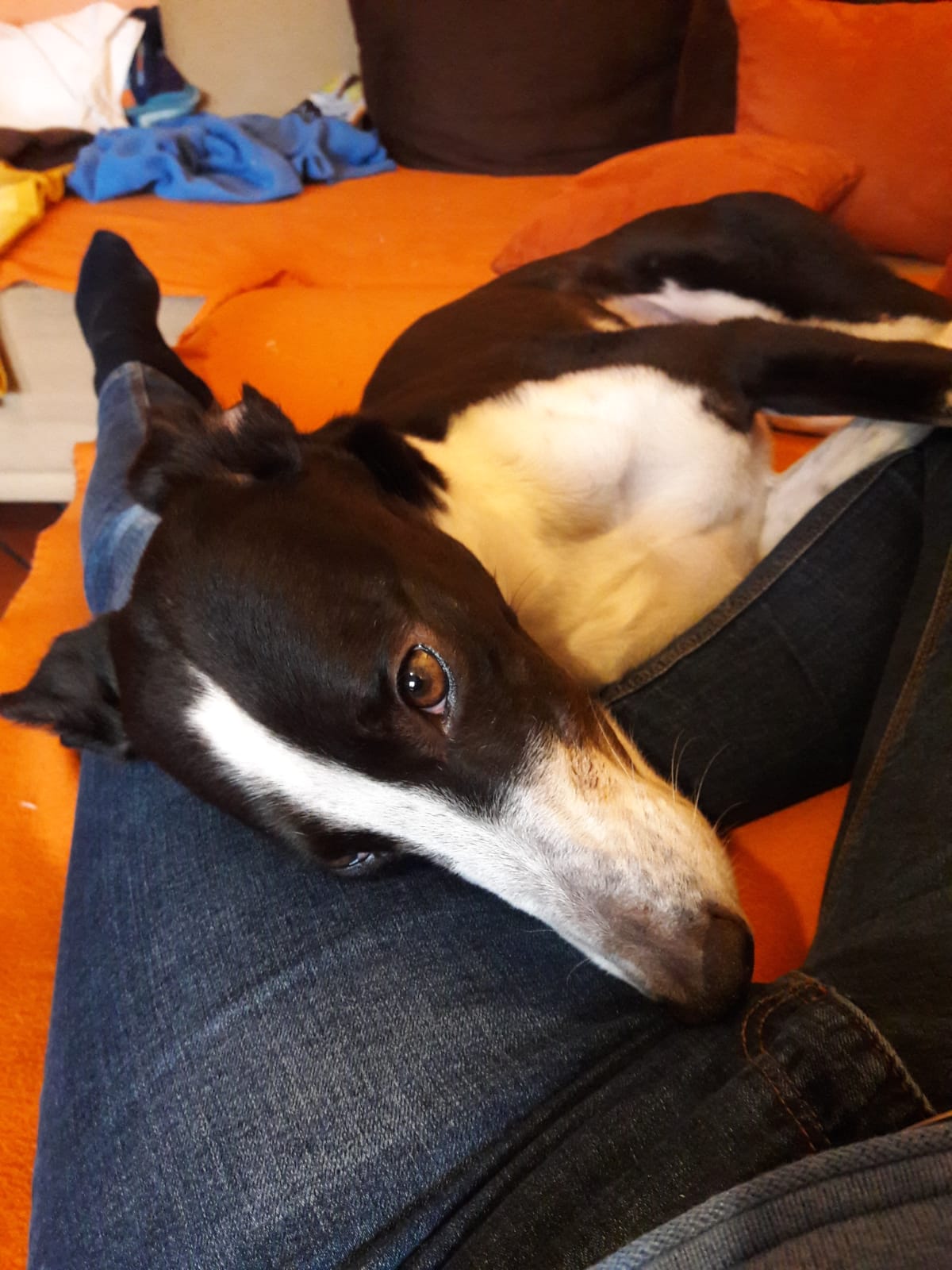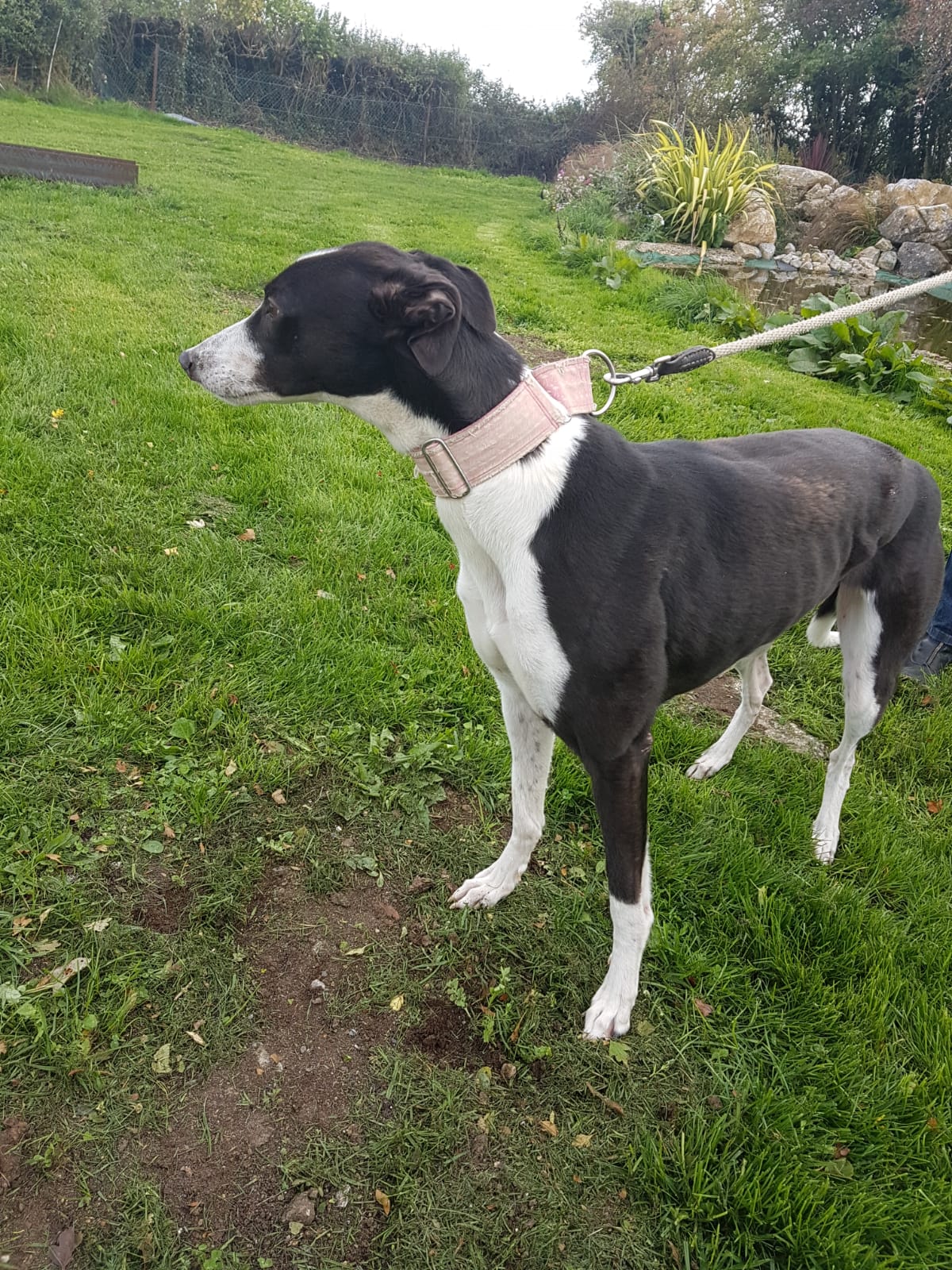 Ihrem Rennnamen „Magpie“, auf deutsch „Elster“, macht sie alle Ehre: Sie liebt es „Dinge“, vor allem weiche Stoffe, Felle und Papier zu „stehlen“ und in ihr „Nest“ zu bringen. Aber sie hat schon gelernt was „Nein“ bedeutet und gibt die Sachen ohne Probleme wieder her.