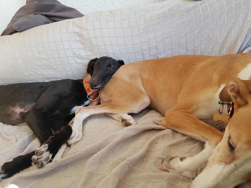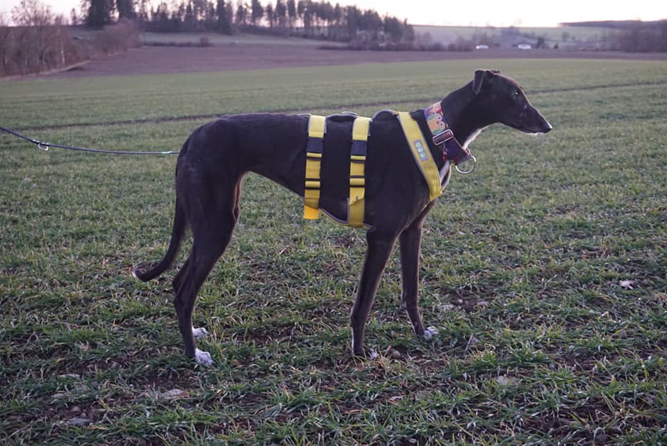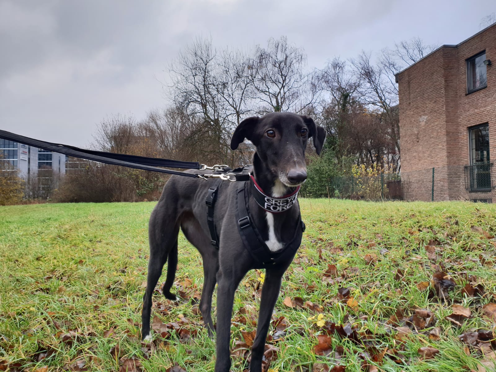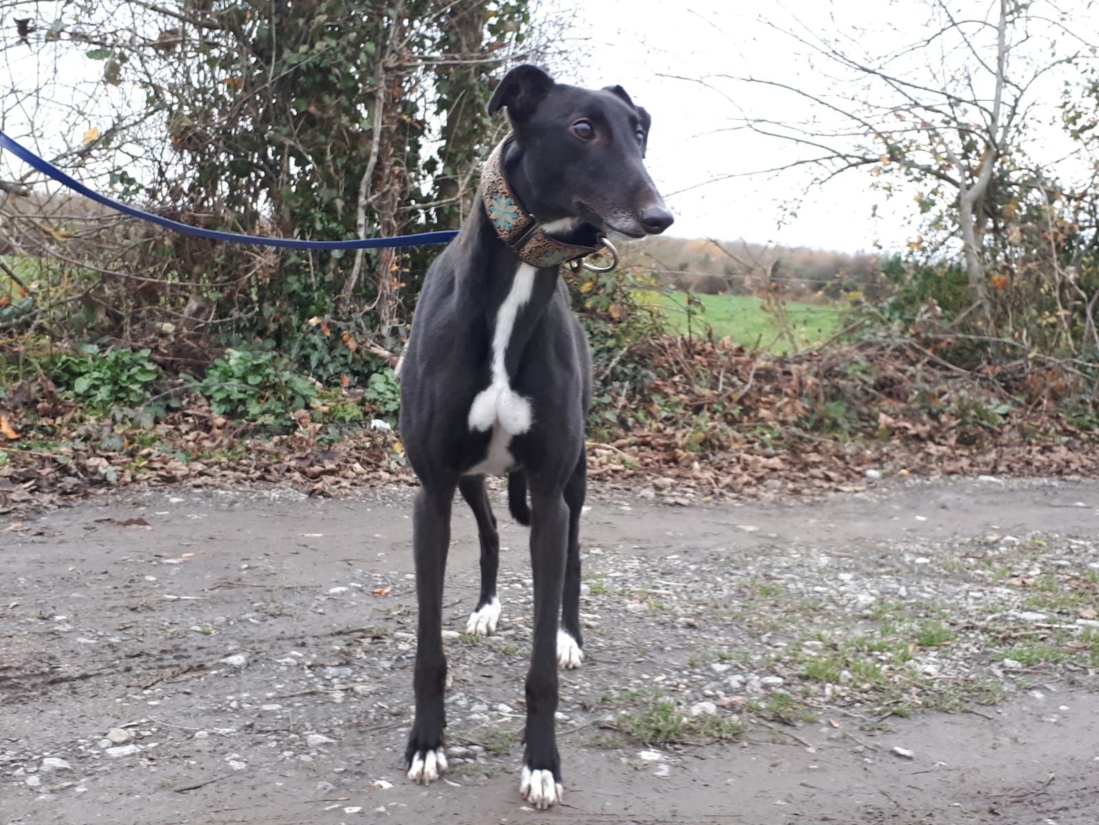 Lulu wurde gemeinsam mit ihren Wurfgeschwistern bei den Tierschützern abgegeben. Sie musste nie Rennen laufen. Lulu kann beim ersten Treffen schüchtern sein, aber sobald sie aus ihrer Schale heraus kommt, ist sie ein freundliches, verspieltes und manchmal freches Mädchen. Sie hat ein iebenswertes Wesen. Sie versteht sich mit allen Hunden beiderlei Geschlechts und jeder Größe gut. Sie wurde mit Katzen getestet und nahm keinerlei Notiz von ihnen, aber sie war auch sehr unsicher in der Umgebung. Daher können wir noch nicht ganz sicher sagen, ob sie katzentauglich ist. Sie läuft großartig an der Leine. Am besten wäre für sie ein Zuhause mit anderen Hunden, da sie deren Gesellschaft liebt.