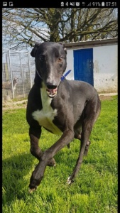 Merlin ist ein entzückender kleiner Greyrüde mit einem liebenswerten, süßen Gesicht. Er ist zu Beginn etwas schüchtern und zurückhaltend, aber wenn er einen erst einmal kennengelernt hat, dann ist er sehr anhänglich und mag es zu küssen. Er liebt es im Garten zu spielen, ganz besonders mit einem Ball oder einem Quietschespielzeug und er findet es sehr lustig, dieses zu jagen. Er hat ein tolles Temperament gegenüber anderen Hunden und wäre ein toller Zweithund für einen ruhigen, souveränen Hund. Merlin braucht jemanden der hinter seine Schüchternheit schaut und ihm die Zeit gönnt, seine wahre, schöne Persönlichkeit durchscheinen zu lassen. Er wird ein sehr liebenswerter und loyaler Begleiter werden.