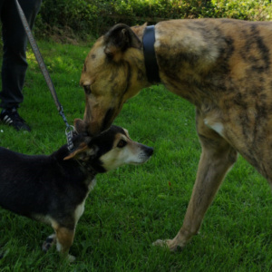 Nala ist eine absolut liebe und sehr süße Hündin. Sie versteht sich sehr gut mit allen Hunden: Großen, kleinen, Rüden und Hündinnen. Sie ist eine Ex-coursing-Mädchen. Sie geht wunderbar an der Leine.