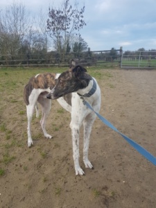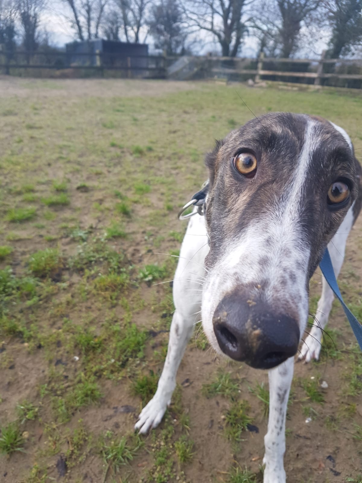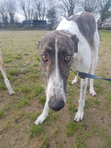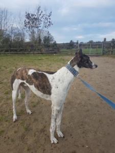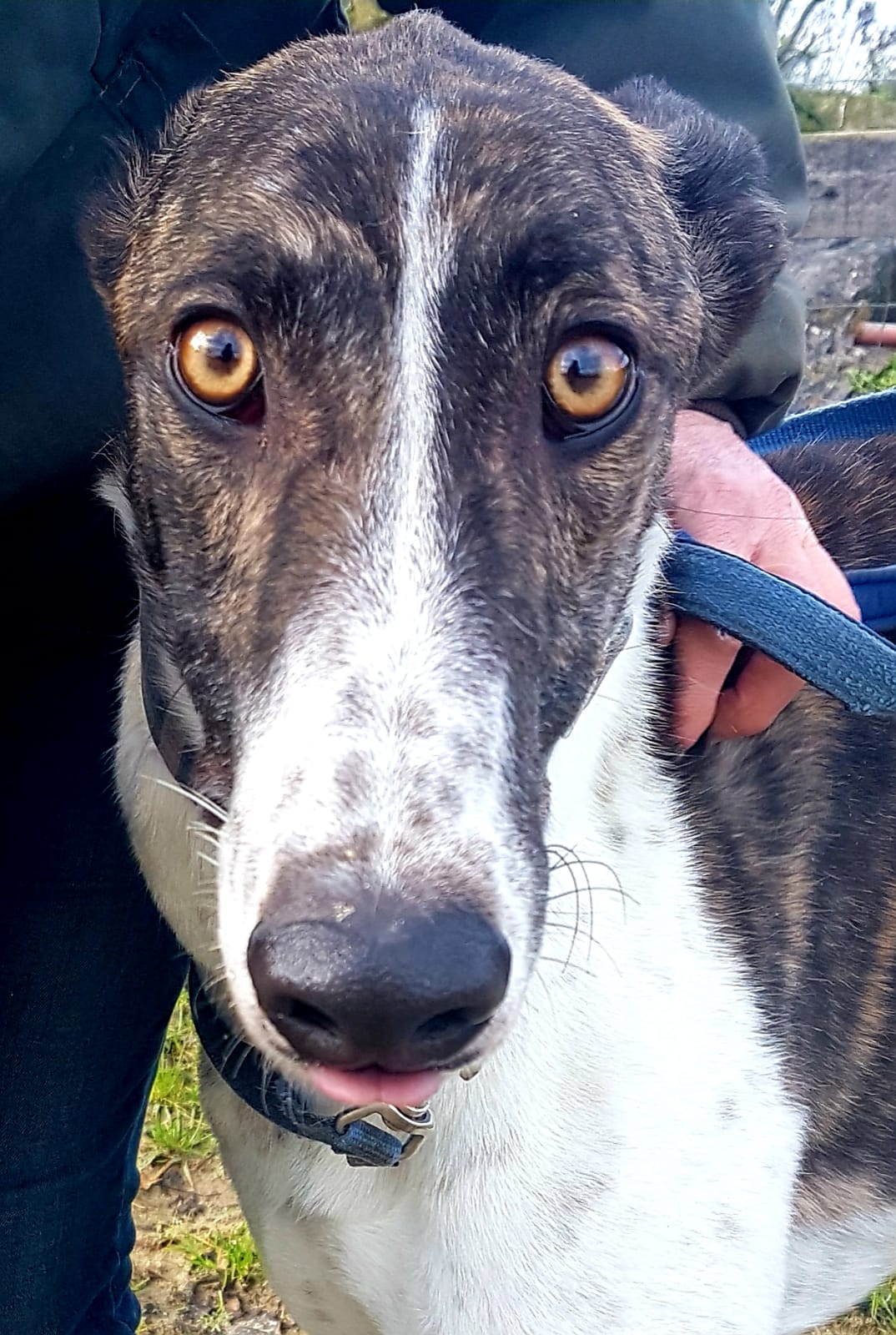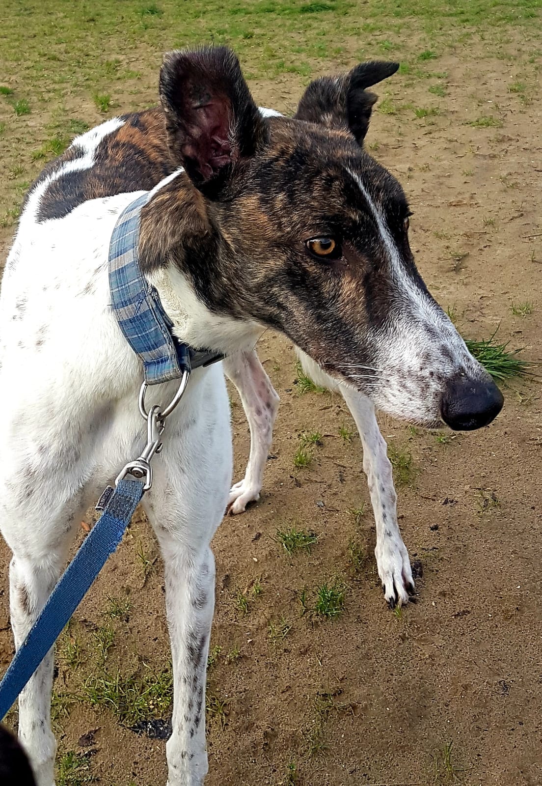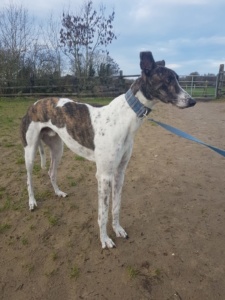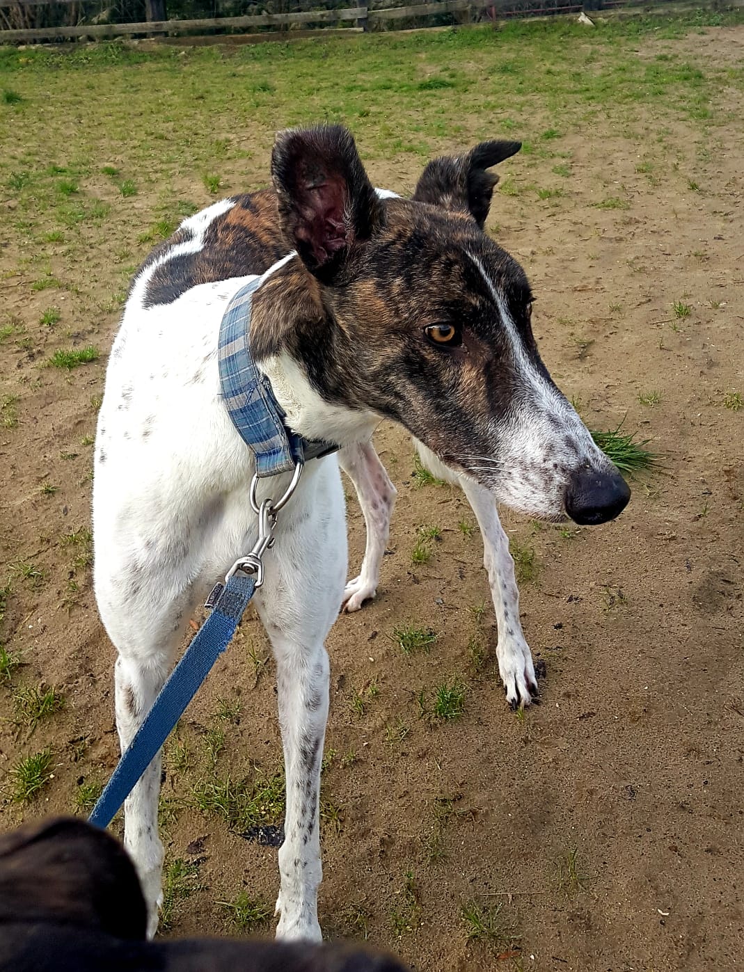 Quinn ist ein prächtiger, hübscher, glücklicher und selbstsicherer Junge. Er ist anhänglich, genießt es geknuddelt zu werden aber am meisten mag er es sich an einen zu schmiegen um sich Liebe zu holen. Er war als Coursing-Greyhound nicht gut genug und zu seinem Glück darf er nun ein großartiger Familienhund werden. Er ist so cool und gelassen und liebt es den ganzen Tag in seinem Bett zu dösen. Aber er genießt es auch sehr spazieren zu gehen, wobei er ganz locker an der Leine geht. Quinn teilt sich seinen Zwinger mit Peppa und die beiden sind dicke Freunde. Er ist super sauber in seinem Zwinger und benimmt sich so brav, er will immer gefallen. Er wird ein großartiger Familienhund werden.