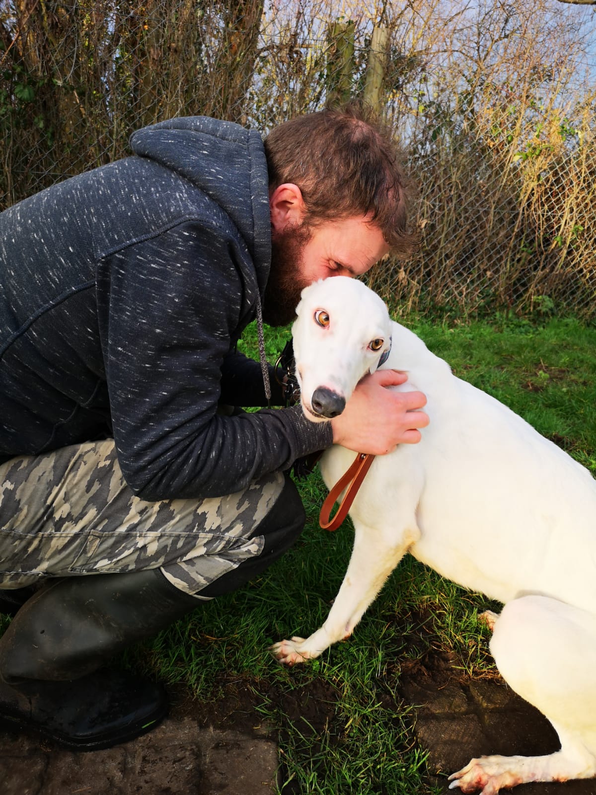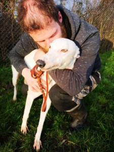 Snow White wurde den Tierschützern übergeben, da sie für’s Coursing als nicht gut genug befunden wurde. Sie kann zu Anfang etwas schüchtern sein aber sie ist ein super süßes Mädchen. Sie setzt sich hin, was für einen Greyhound unüblich ist. Sie ist sehr anhänglich und liebevoll. Wir denken, sie könnte zu Kindern vermittelt werden. Sie versteht sich mit Hunden beiderlei Geschlechts und jeder Größe. Ob sie mit Katzen harmonieren könnte, wird noch getestet. Sie ist gerne in Gesellschaft anderer Hunden aber bräuchte nicht unbedingt welche in ihrem neuen Zuhause.