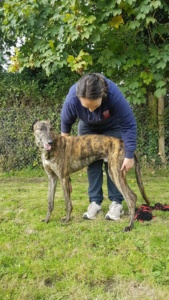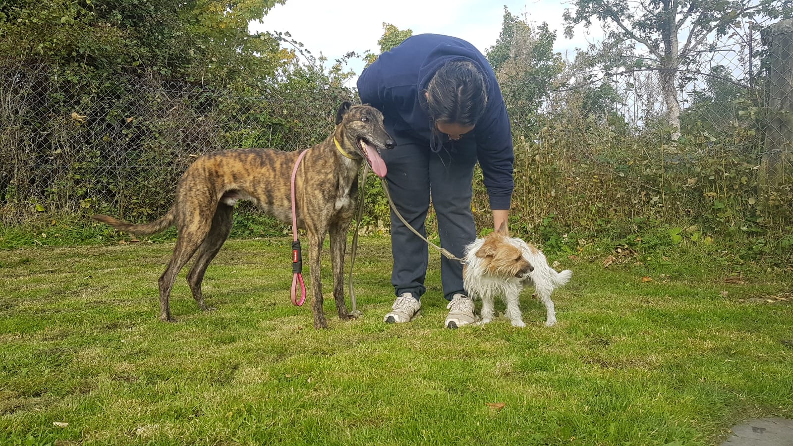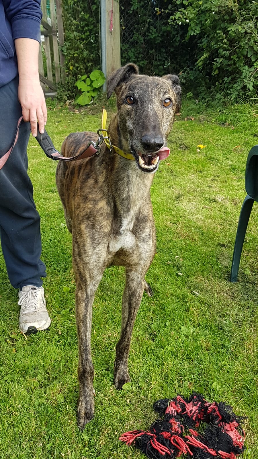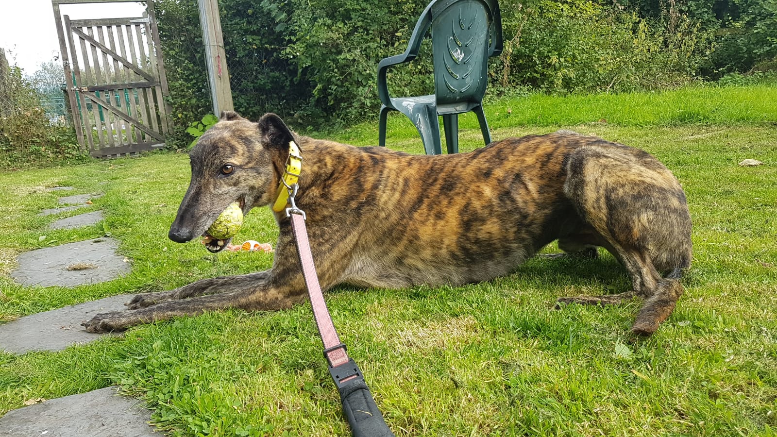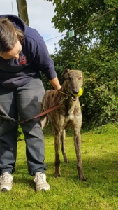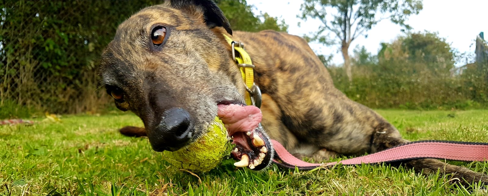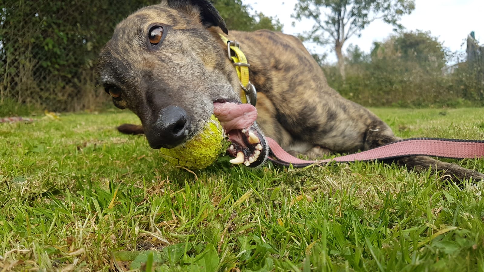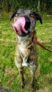 Sparky ist ein unbeschwerter Junge. Er liebt es absolut mit Tennisbällen zu spielen (er kann ein wenig obsessiv dabei werden, daher sollte man sie ihm nicht pausenlos überlassen). Er versteht sich großartig mit allen Hunden jeder Größe und jeglichen Geschlecht. Er ist etwas aufgeregt zu Anfang wenn er kleine Hunde trifft. Ein Zuhause mit älteren Kindern würde gut zu ihm passen, wegen seiner Obsession mit den Tennisbällen. Er ist ein selbsbewusster Junge. Sparky könnte als Einzel- oder Zweithund gehalten werden. Er geht super gut an der Leine und liebt es geknuddelt zu werden. Er ist fabelhaft!