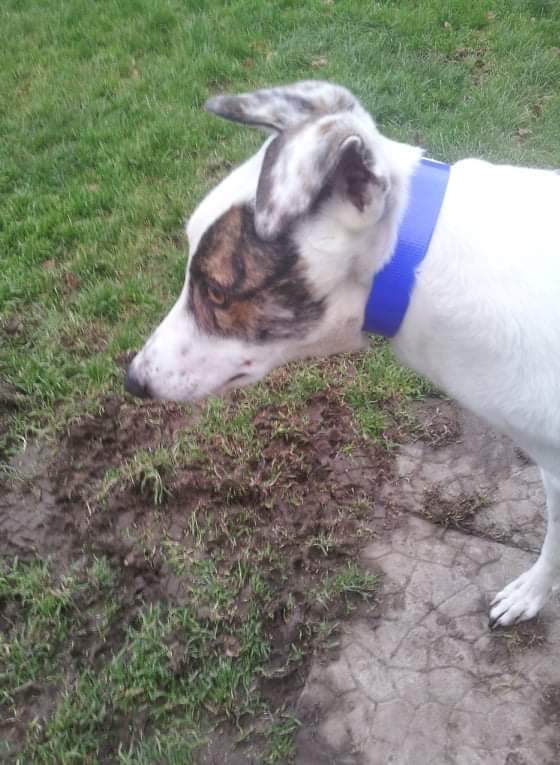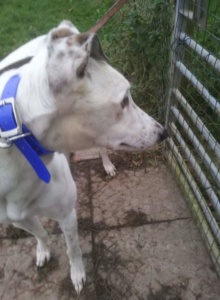 Toby ist ein sehr liebenswerter und verschmuster Junge, voller Vitalität. Er ist immer glücklich und begrüßt jeden mit einem glücklichen Gesicht und wedelndem Hinterteil. Er ist ein tollpatschiger, alberner Junge und liebt es zügellos durchs Feld zu preschen, aber er liebt es auch ebenso sich ins Bett zu kuscheln und den Tag zu verschlafen. Er geht super an der Leine und mag es zu schnüffeln und zu schlendern. Er gewöhnt sich immer mehr an die Hühner, welche er täglich sieht. Er kann nun ohne Reaktion durch diese durchlaufen. Mit dem richtigen Training könnte er wahrscheinlich gut an Katzen gewöhnt werden. Toby hat eine schiefe Rute, welche gebrochen gewesen sein muss als er noch jünger war. Aber diese schiefe Rute passt herrlich zu seiner lustigen, albernen Persönlichkeit und macht ihn damit noch gutaussehender als er eh schon ist. Er ist ein perfekter Junge welcher Sonnenschein und Glück in sein neues Zuhause bringen wird.