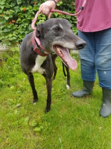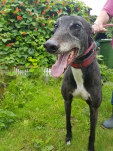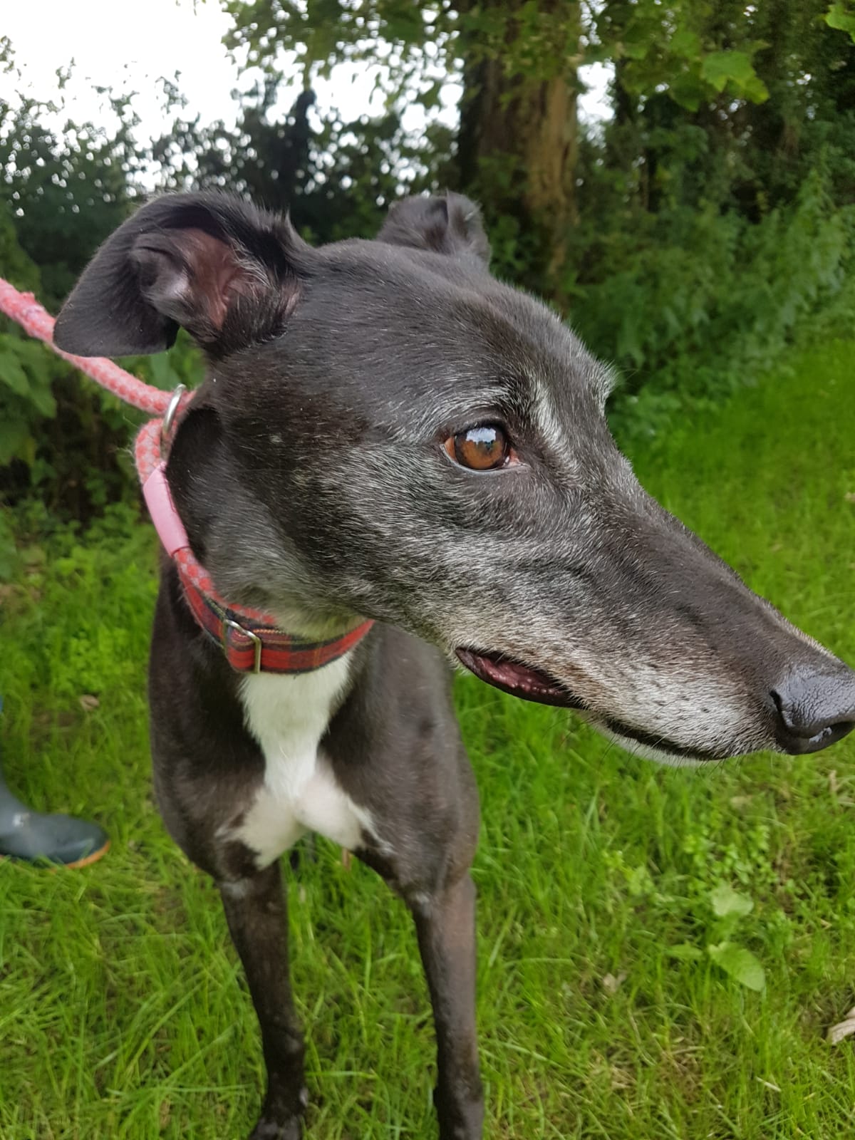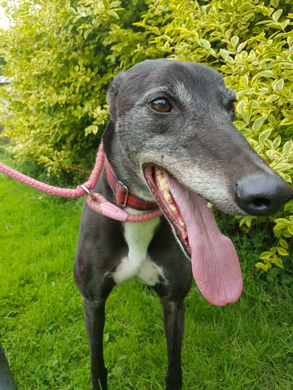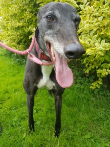 Laut Tierschützern ist Tommy einer der nettesten Greyhounds, welche sie je kennengelernt haben. Er hat ein sehr süßes Wesen und ist einfach nur sanftmütig. Er liebt sein neues Leben in deren Zwingern und man findet ihn oft mit allen Vieren nach oben gestreckt in seinem Bett liegen. Er hatte zuvor keine Ahnung was Leckerchen sind, doch nun freut er sich riesig wenn er welche bekommt, auch sein Abendessen liebt er sehr. Tommy versteht sich super mit allen anderen Hunden im Zwinger. Noch hat er keine kleineren Hunde kennengelernt, doch da er ganz ruhig bleibt, wenn er an den Hühnern vorbeiläuft, vermuten die Tierschützer, dass er auch mit kleinen Hunden und Katzen kein Problem haben wird. Das muss allerdings noch getestet werden.