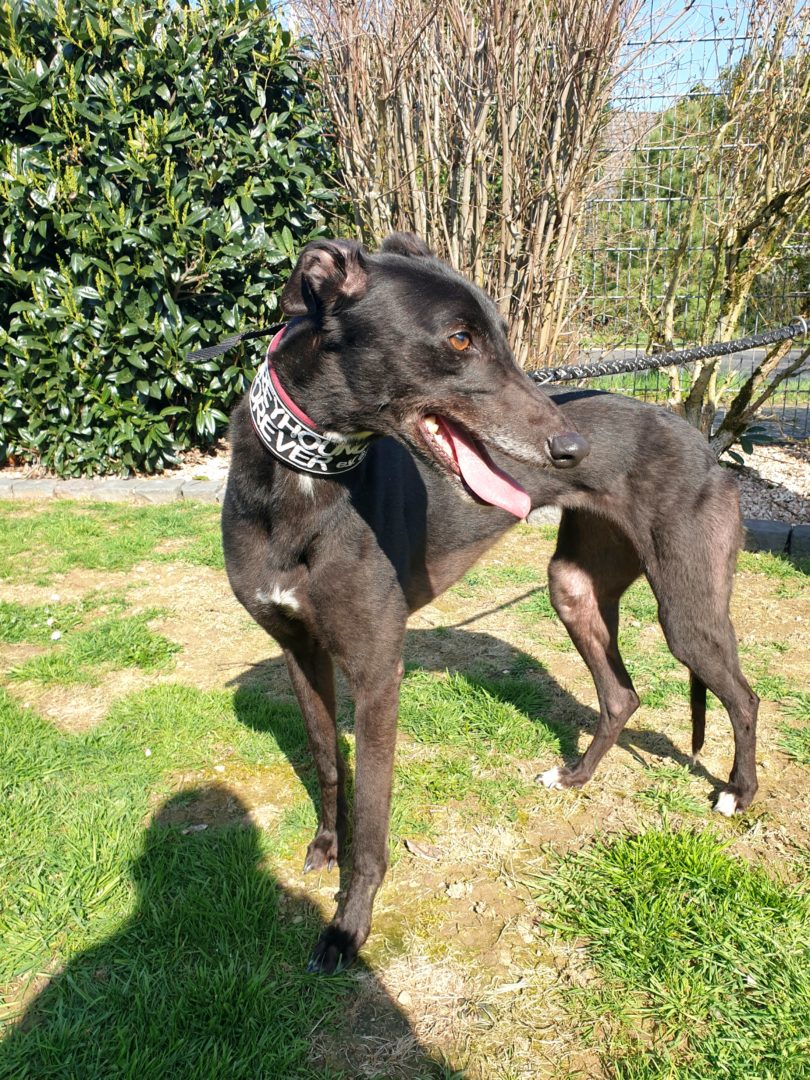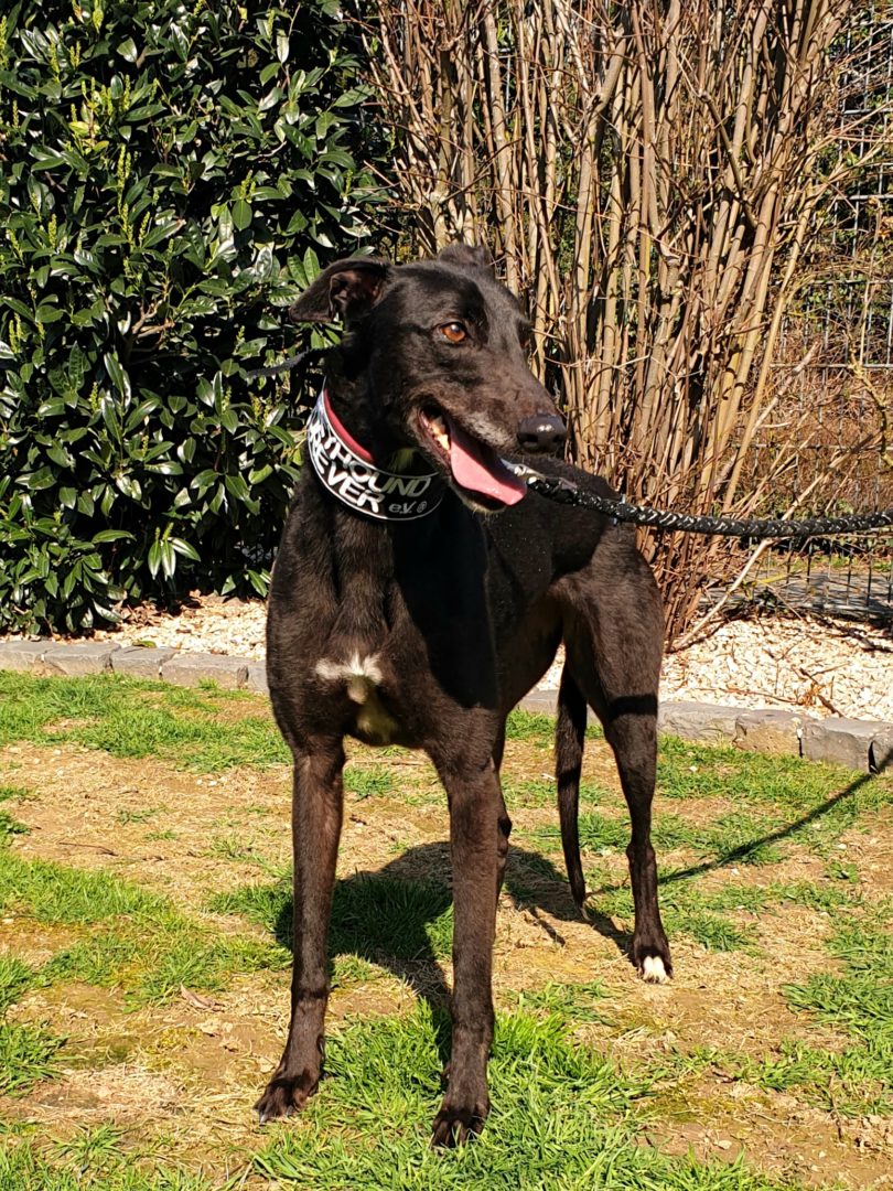 Topsy ist mit ihren 65 cm ein ziemlich kleines Mädchen und die Schwester von Jill und Jack, welche beide schon über Greyhound Forever ihr Zuhause gefunden haben. Sie ist ein sehr schüchternes, nervöses Mädchen. Sie braucht ein ländliches Zuhause mit Gesellschaft von einem oder mehreren Hunden. Sie versteht sich sehr gut mit allen Hunden von klein bis groß, ob Rüde oder Hündin. Ihr Vertrauen in die Menschen bessert sich von Tag zu Tag und sie läuft schön an der Leine.
