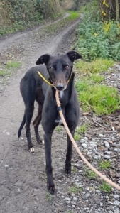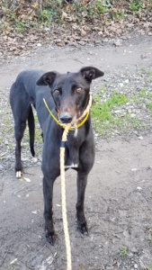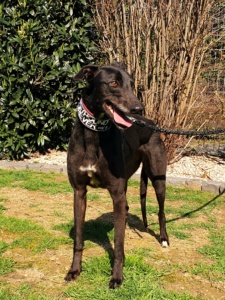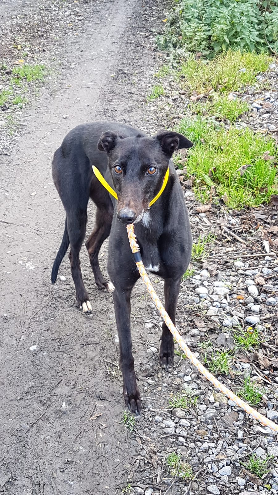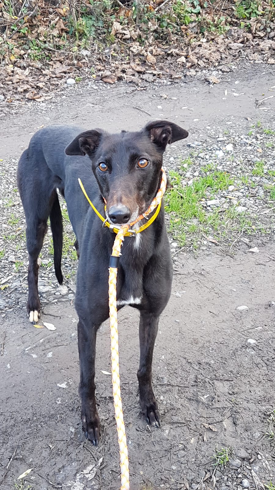Topsy ist immer noch ein wenig schüchtern und zurückhaltend, es ist aber schon viel besser geworden. Sie geht gerne spazieren, möchte aber nicht von Fremden angefasst werden. Im neuen Zuhause sollte ein möglichst souveräner Ersthund vorhanden sein. Mit dem vorhanden Greyhoundrüden versteht sie sich sehr gut und orientiert sich an ihm. Sie geht perfekt an der Leine, ist stubenrein und sie verträgt sich mit der Katze der PS. Sie schaut ihr nach, hat aber keinerlei Ambitionen hinterherzulaufen. Besuchern geht sie lieber aus dem Weg und fühlt sich sicher in einem ruhigen Haushalt wohl.