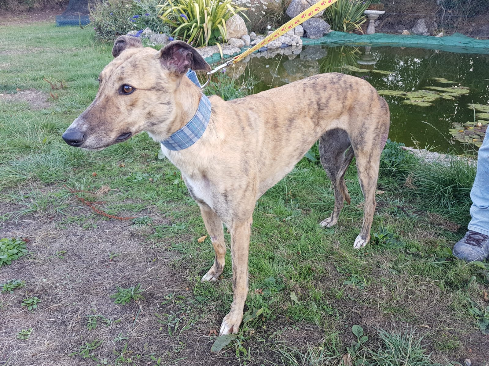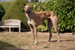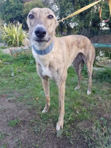 Dieses hübsche Mädchen ist gerade erst 2 Jahre alt geworden und sucht nach ihrem ganz eigenen Zuhause. Ursprünglich für’s Coursing gezüchtet, hat sie eine ungefähre Schulterhöhe von 70 cm und ist in einer fantastischen Kondition. Sie hat keinerlei Verletzungen und reist gerne. Bisher war Vixen noch nicht oft in Gesellschaft von Kindern, aber sie ist so freundlich, dass ihr Besitzer vermutet, dass sie deren Gesellschaft mögen wird. Allerdings würde sie nicht in ein Zuhause mit Katzen passen. Vixen ist ein sehr verspielter und liebenswerter Greyhound, die ein großartiges Familienmitglied werden wird.