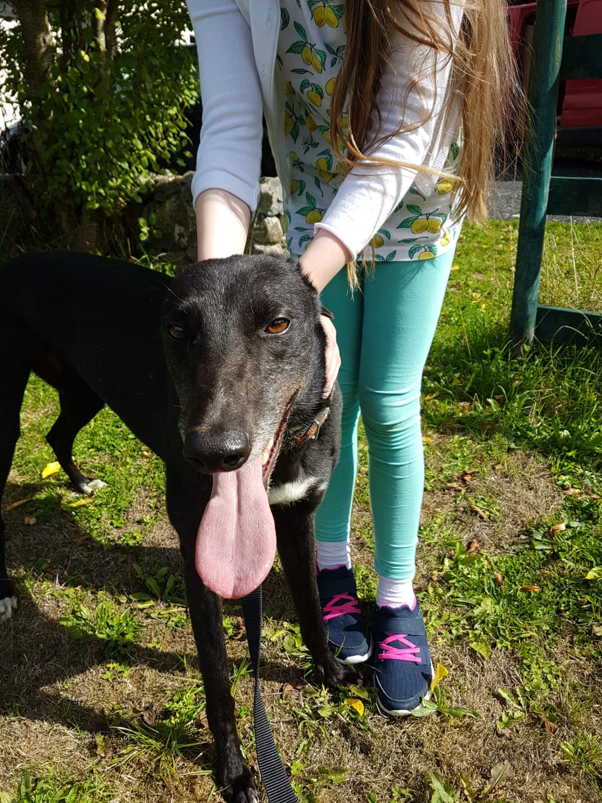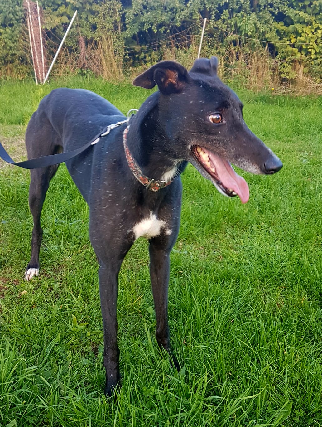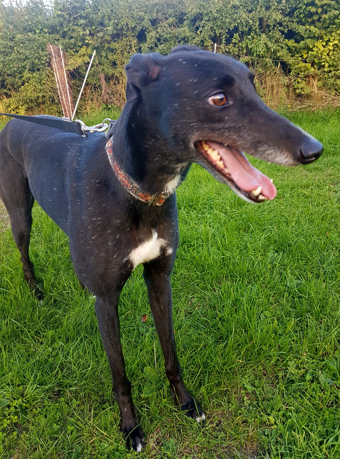 Sie teilt ihren Zwinger mit Giorgio und die beiden sind enge Kumpel. Wilma wäre der perfekte Hund für Greyhoundanfänger und könnte als Einzelhund gehalten werden, wäre aber auch eine tolle Begleiterin für einen bereits vorhandenen Hund. Kindern gegenüber ist sie ganz lieb und sanft. Sie ist großartig!