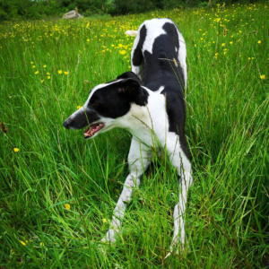 Frosty kommt aus dem Coursing. Er wurde uns mit seinem Bruder übergeben, der schon ein Zuhause gefunden hat. Frosty ist ein fabelhafter Junge!! Er ist sehr entspannt und benimmt sich gut an der Leine, wenn er andere Hunde beim Spazierengehen trifft, egal ob groß oder klein. Er ist ein sehr lustiger Junge und ist an der Leine sehr brav. Er kann sehr gut ala Hundeanfänger vermittelt werden, da er sehr ausgeglichen ist. Im Freilauf, blieb er einfach neben mir stehen (abgesehen von einer Flitzerunde von ungefähr 30 Sekunden). Er ist super anhänglich und zärtlich. Einfach der perfekte Junge!!
